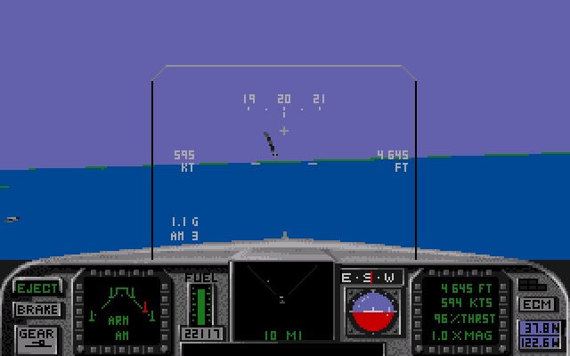 For as long as I can remember, Aviation always sparked my interest, so it was only natural that, as a kid, I bought the F/A 18 Interceptor Flight Simulator to play Pilot on my Amiga 500 back in the 80/90 era. We've even had weekend sleepovers where a couple of friends and I took over the attic of another friend and built “cockpits” out of cardboard with cut-outs for our monitors. We basically ignored the combat aspect of it, I was just interested in the machine and flying through below the Golden Gate Bridge since the default base was in San Francisco and the virtual cockpit looked like this: